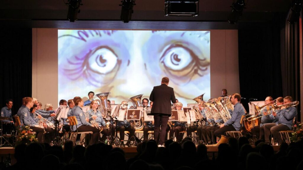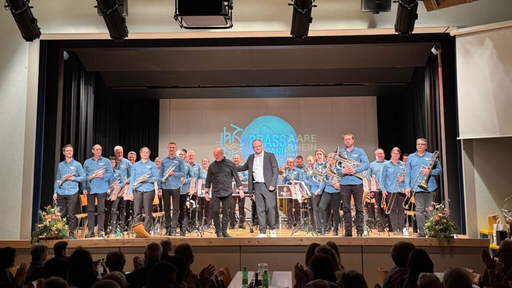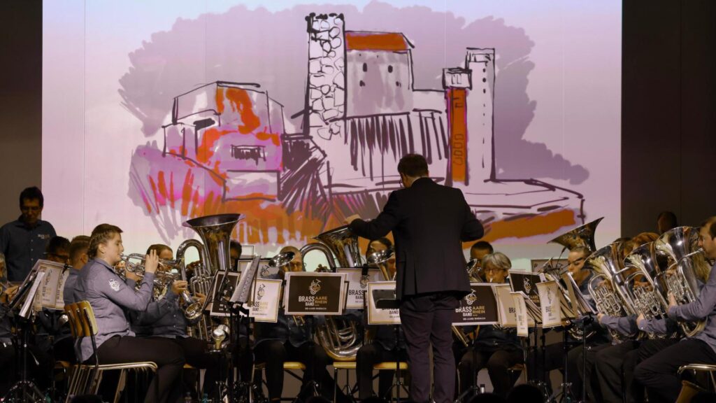 Auch 2025 lud die Brass Band Aare-Rhein einen Gast ein, um den Konzertbesuchern beste Unterhaltung zu bieten. Gemeinsam mit Rupert Hörbst, einem Künstler, Illustrator und Karikaturisten aus Oberösterreich wurden «Klangfarben» erzeugt.